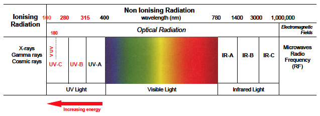 下表總結了紫外線分類帶,從廣義上講,它們可能對健康造成不利影響。