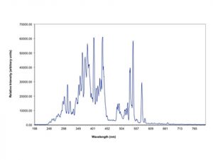 紫外線光源zui好由其紫外線發射光譜來定義,紫外線光譜是能量分布與波長的函數。提供了一個示例,其中顯示了相對於峰值波長的發射光譜。