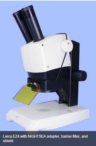 將NIGHTSEA SFAZ Adapter(SFAZ熒光適配器)安裝在Leica EZ4係列體視顯微鏡上,然後再用激發燈源照射樣本,就可以觀測樣本中的熒光啦。