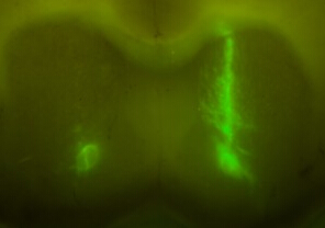 EGFP標記的慢病毒質粒注射進小鼠大腦區域(Marina Wolf, Rosalind Franklin University)