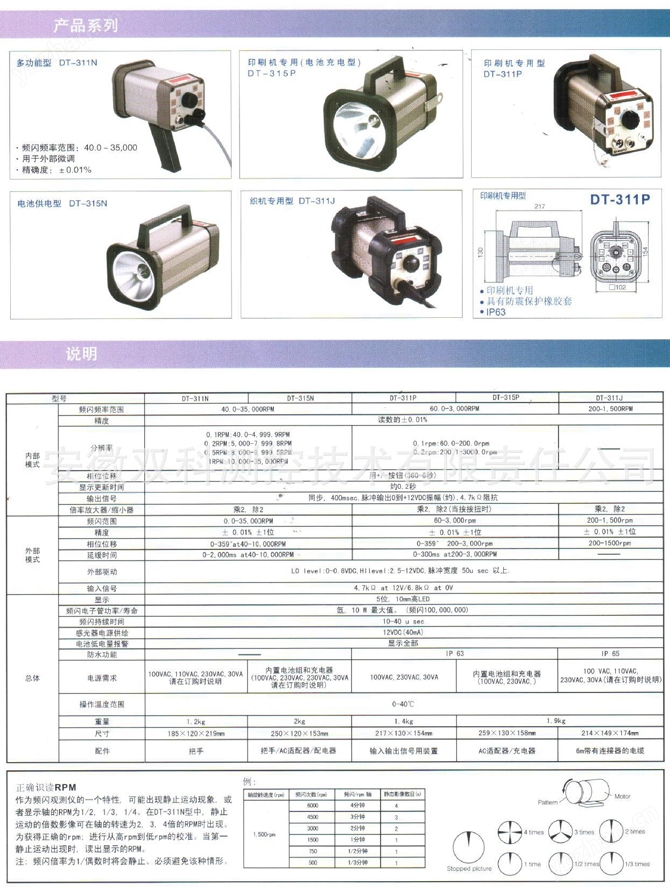 DT-311N/315N為日本SHIMPO新寶新一代的數字式頻閃觀測儀,結構更簡潔,功能更齊全,攜帶列方便, 體積比傳統型小了1/3。測量方便,運用高精度發光可以在40.0~35000rpm的大範圍內測量,配置了外部信號輸入端子,根據外部信號可以延遲發光;關閉電源的同時可以紀錄發光頻率數,搭載了下次再啟動電源時按上次的頻率數發生的功能.